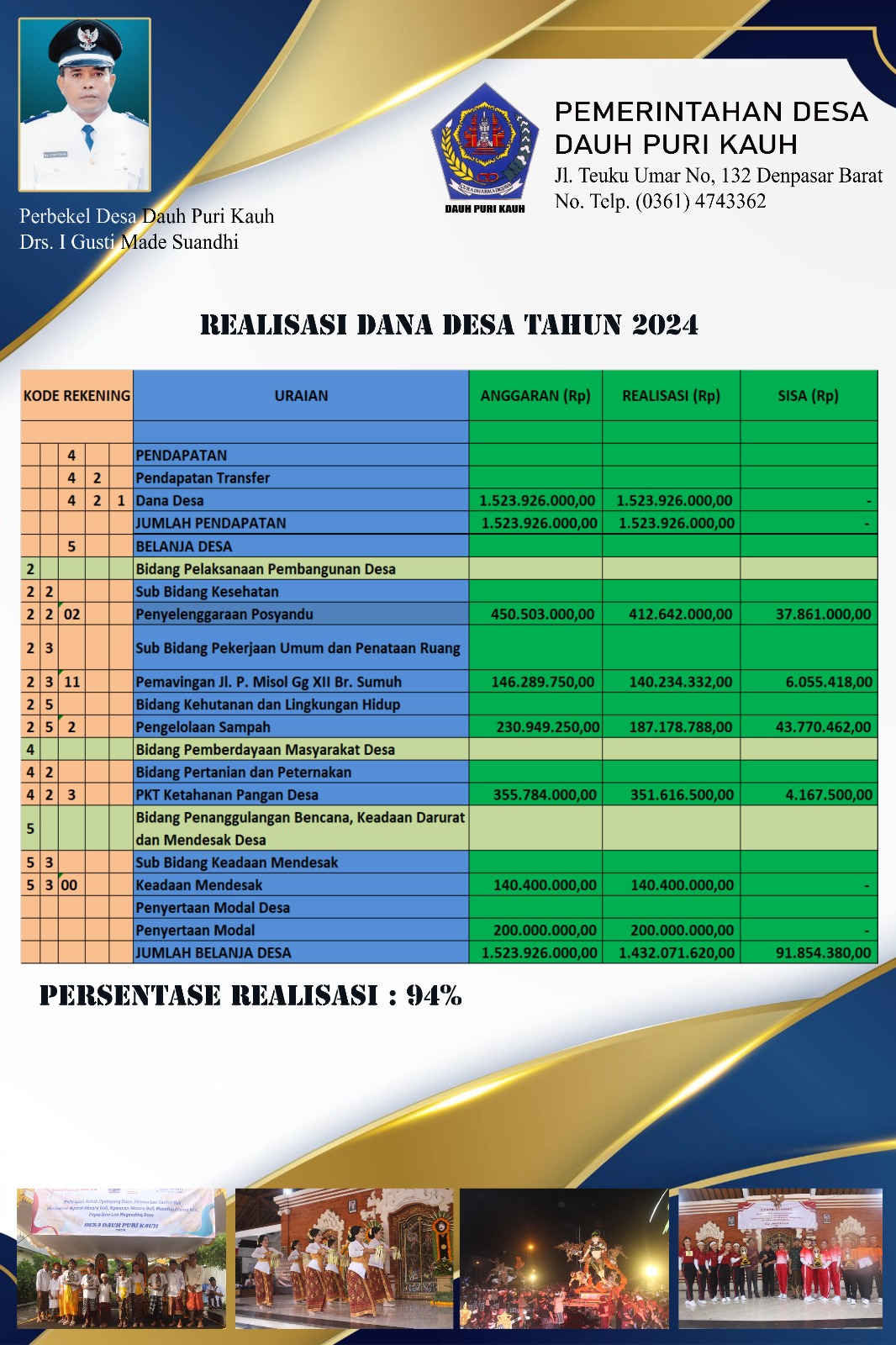 | 7 | REALISASI DANA DESA DAUH PURI KAUH SEMESTER I & II TAHUN 2023 | 355 kali | File |